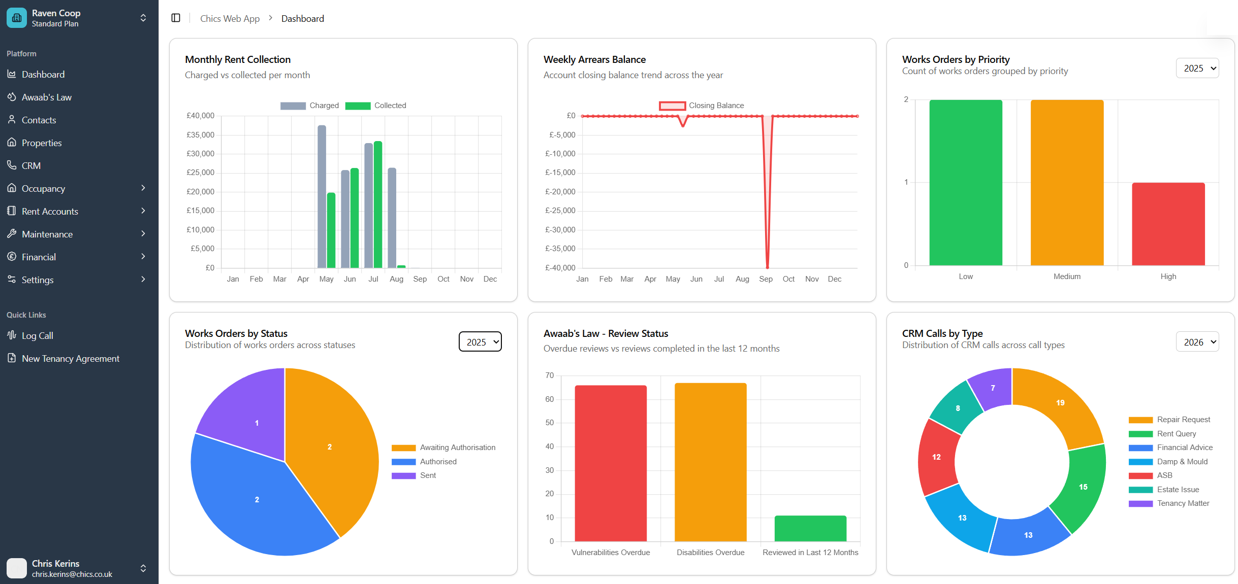 Stop pasting between five systems. CHICS unifies tenancies, rent, repairs, accounts, compliance and CRM in a single, modern web app.